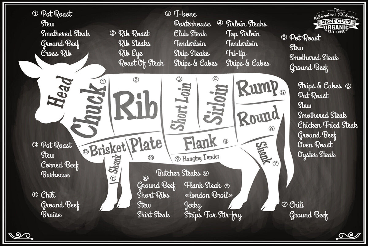 Nostalgie Schild Beef Cuts Kuh Rind Diagramm 12x18 / 20x30 / 30x40 Blech od.Holz Im Angebot