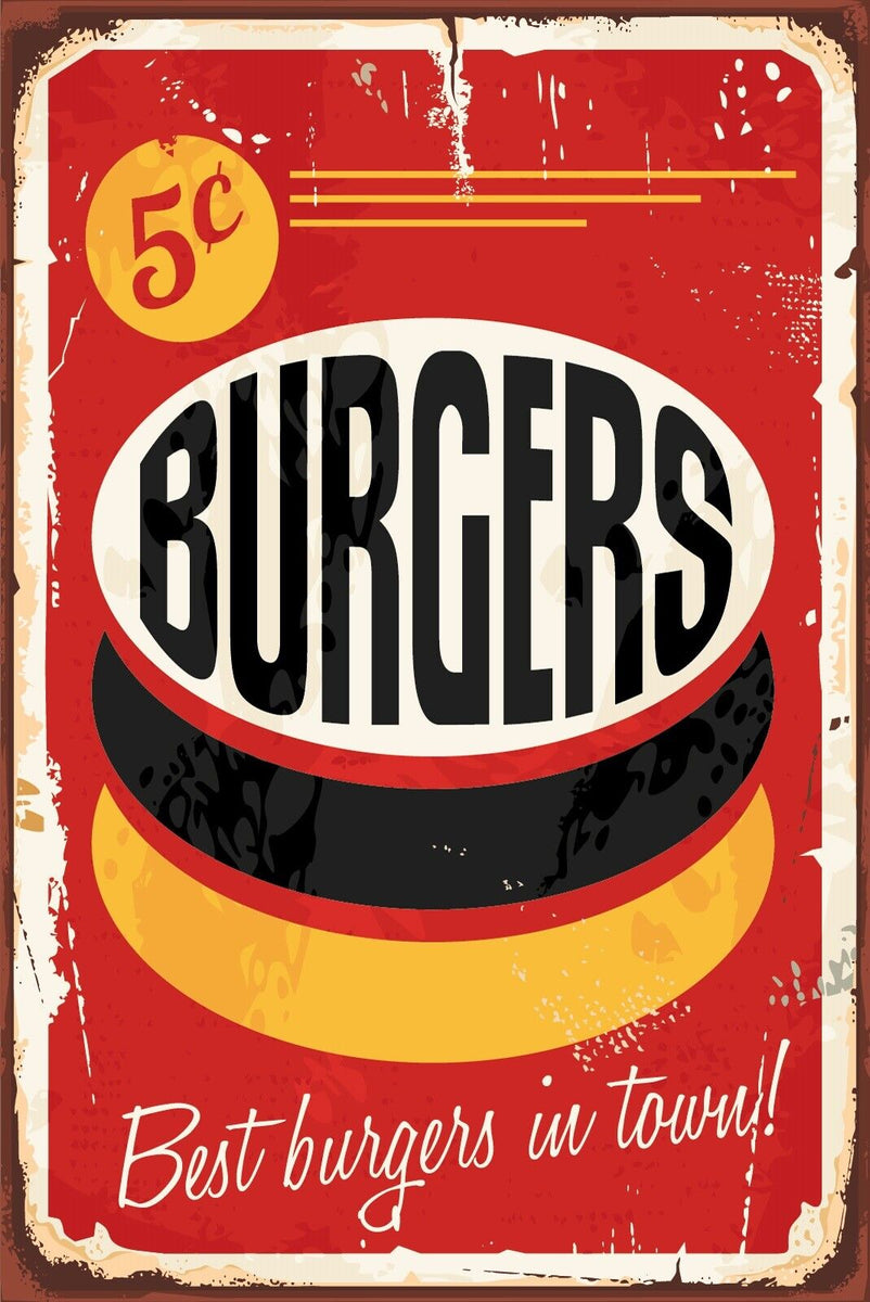Nostalgie Schild Best Burgers in Town 12x18 / 20x30 / 30x40 Blech od. Holz Im Angebot