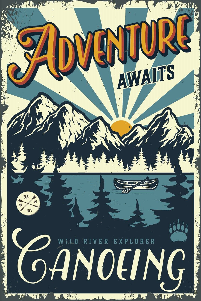 Nostalgie Schild Canoeing Adv. Awaits Kanu 12x18 / 20x30 / 30x40 Blech od. Holz Im Angebot
