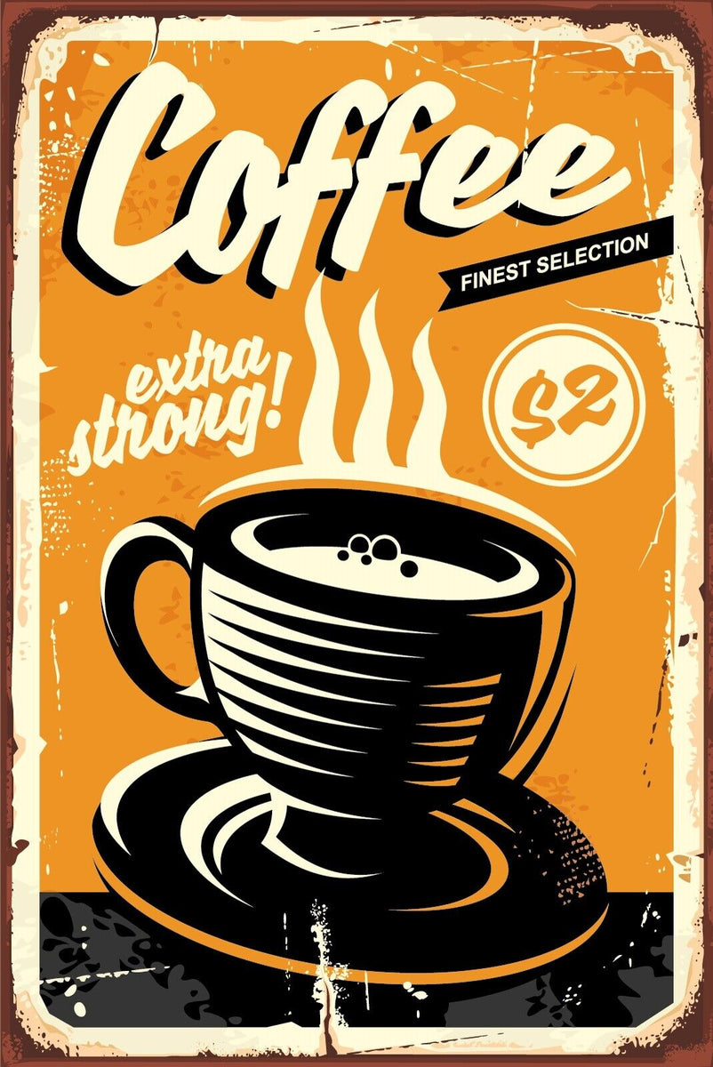Nostalgie Schild Coffee Extra Strong Kaffee 12x18 / 20x30 / 30x40 Blech od. Holz Im Angebot