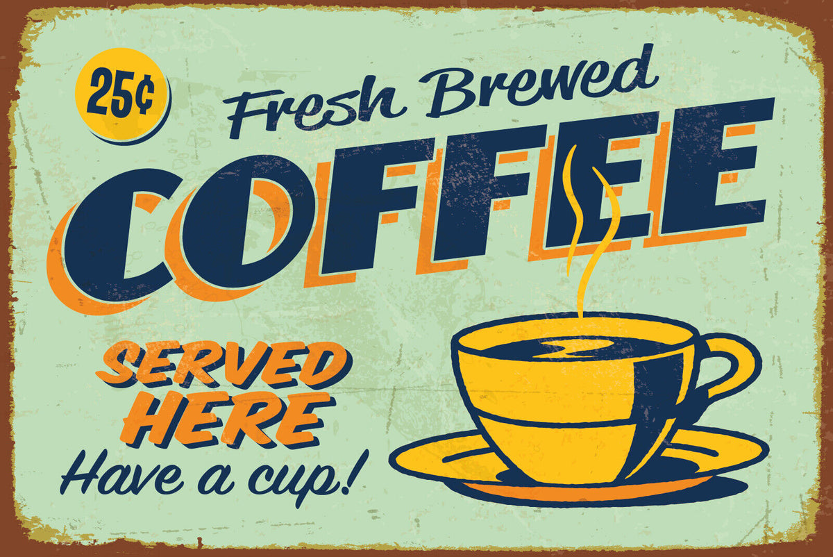 Nostalgie Schild Fresh Brewed Coffee Kaffee 12x18 / 20x30 / 30x40 Blech od. Holz Im Angebot