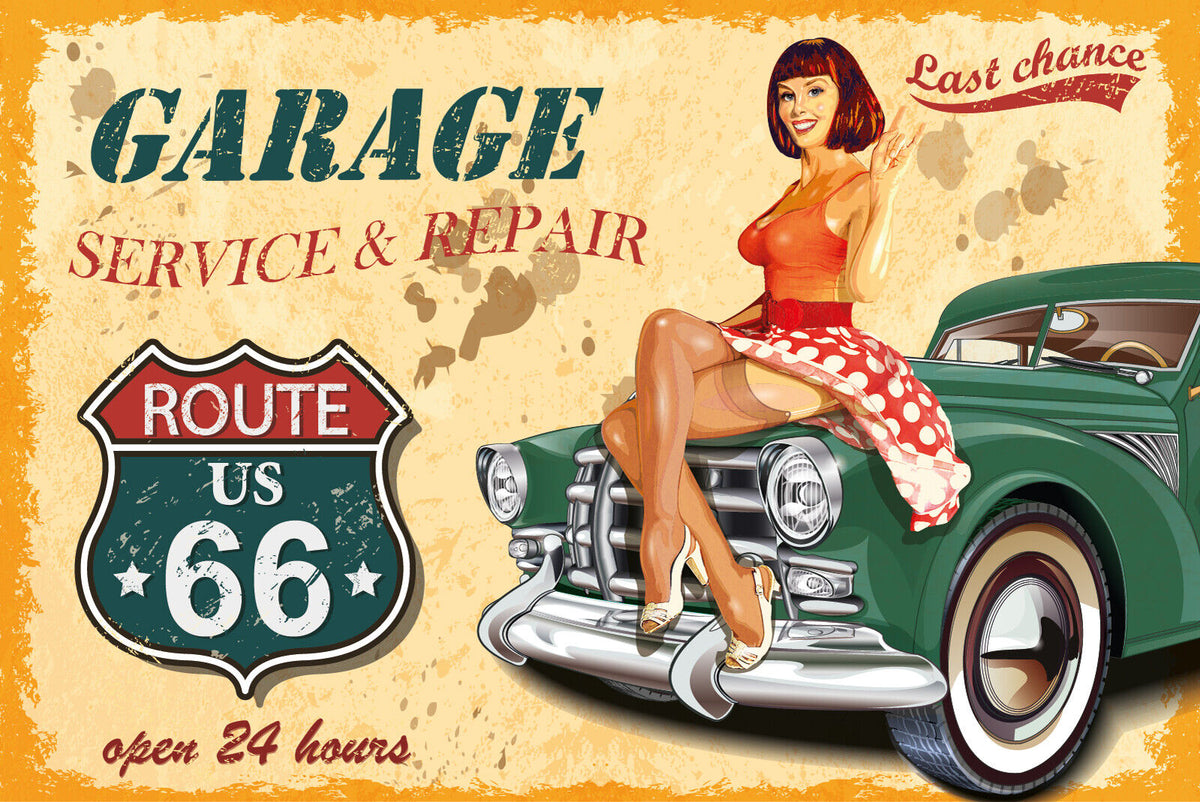 Nostalgie Schild Garage Service Repair Auto 12x18 / 20x30 / 30x40 Blech od.Holz Im Angebot