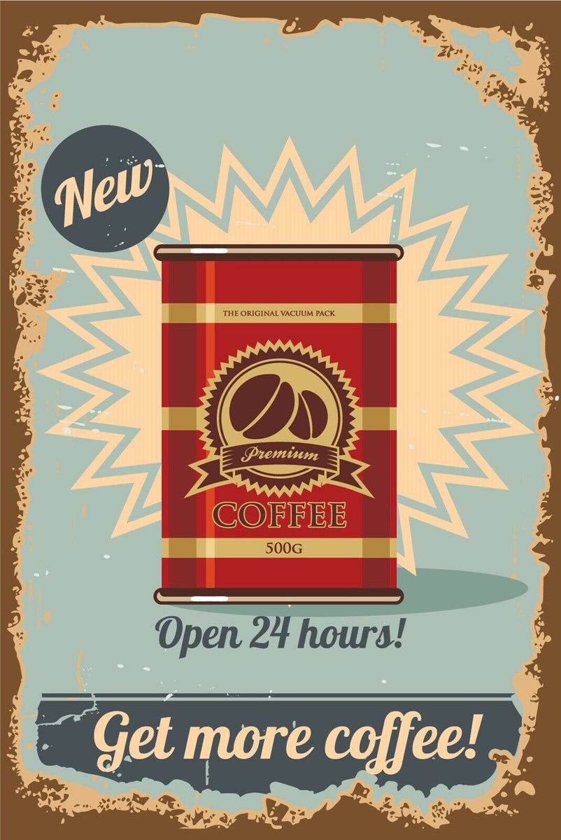 Nostalgie Schild Get More Coffee! Kaffee 12x18 / 20x30 / 30x40 Blech od. Holz Im Angebot