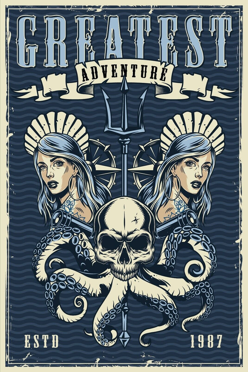 Nostalgie Schild Great.Adv. Kraken Dreizack 12x18 / 20x30 / 30x40 Blech od. Holz Im Angebot