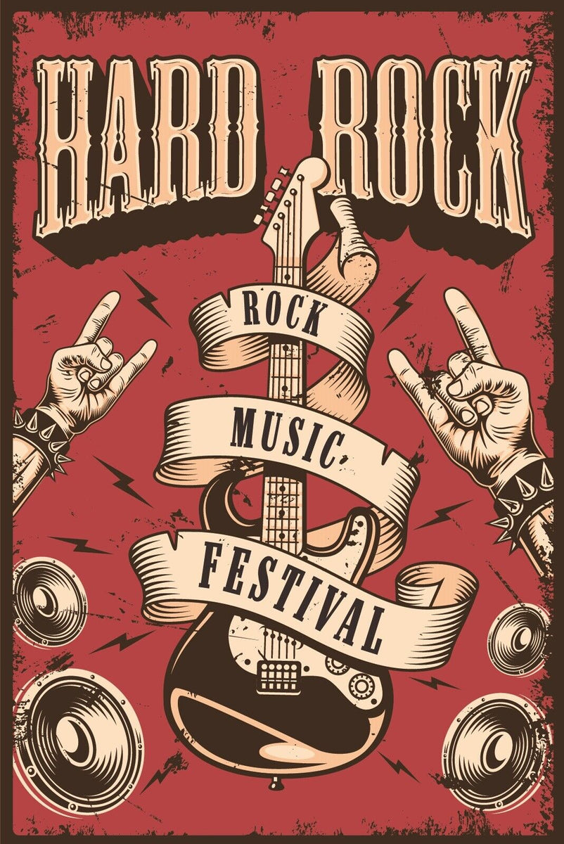 Nostalgie Schild Hard Rock Music Festival 12x18 / 20x30 / 30x40 Blech od. Holz Im Angebot