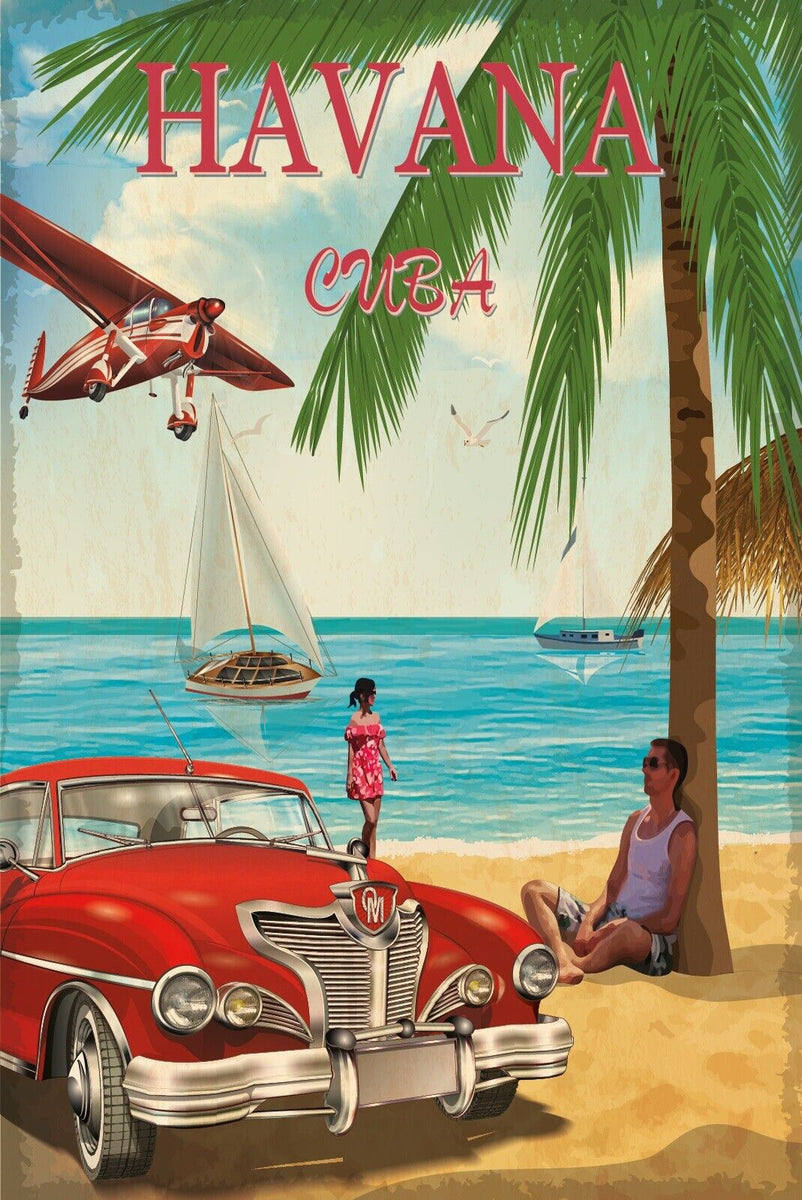 Nostalgie Schild Havana Cuba Auto Palme Boot 12x18 / 20x30 / 30x40 Blech od.Holz Im Angebot