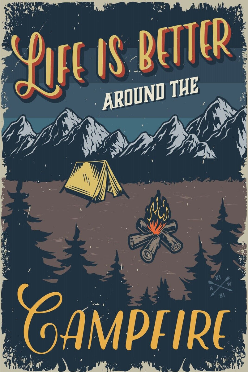 Nostalgie Schild Life Better Campfire Feuer 12x18 / 20x30 / 30x40 Blech od. Holz Im Angebot