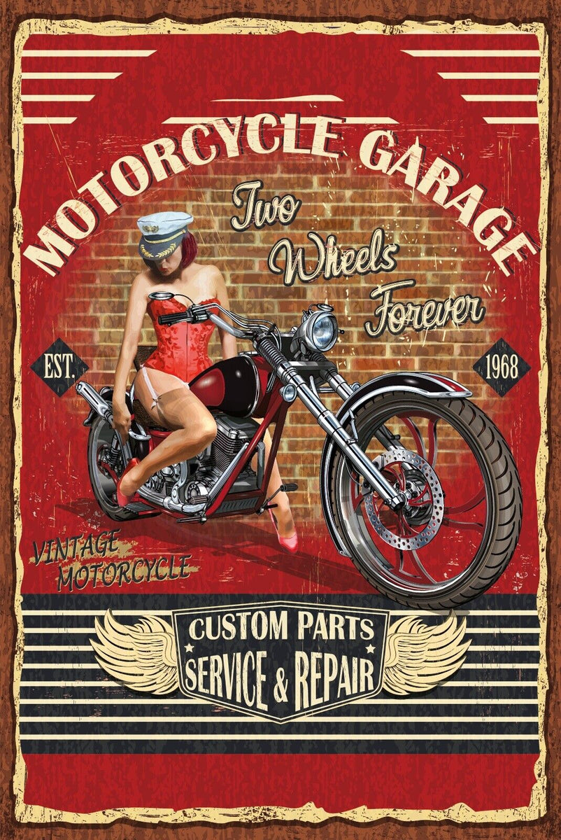 Nostalgie Schild Motorcycle Garage Motorrad 12x18 / 20x30 / 30x40 Blech od. Holz Im Angebot