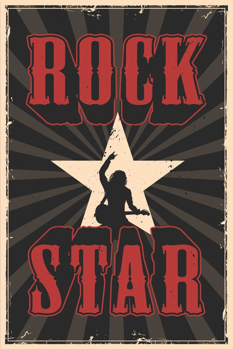 Nostalgie Schild Rock Star Musiker Gitarre 12x18 / 20x30 / 30x40 Blech od. Holz Im Angebot