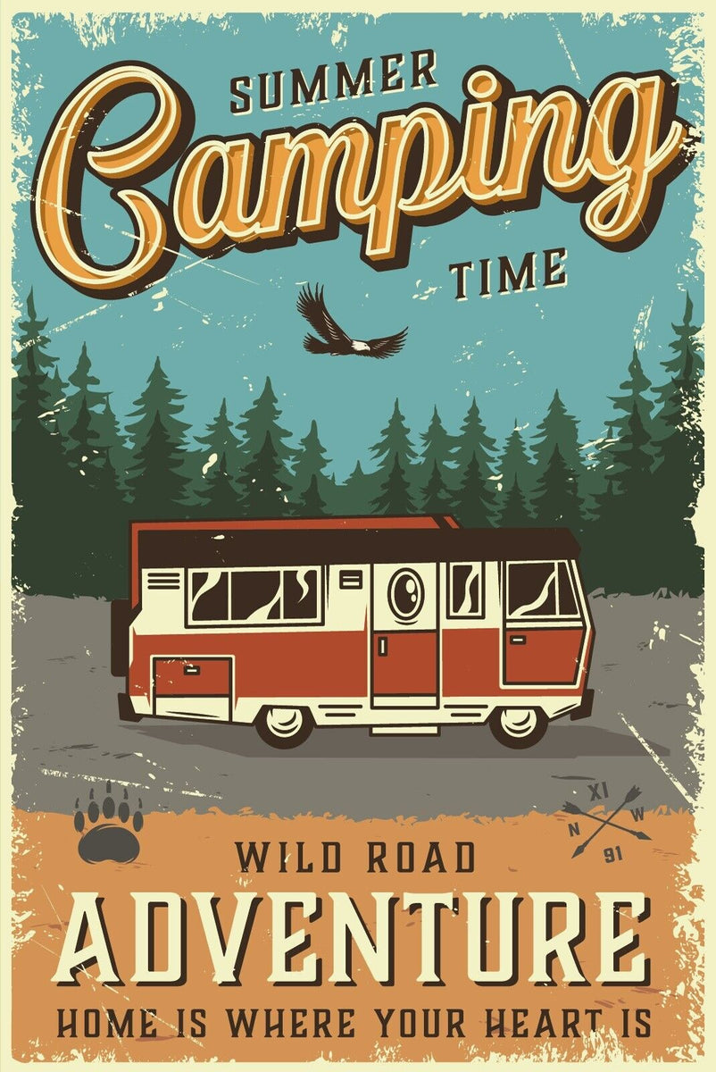 Nostalgie Schild Summer Camping Wohnmobil 12x18 / 20x30 / 30x40 Blech od. Holz Im Angebot