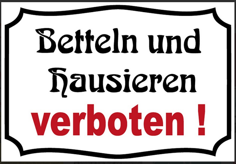 Nostalgie Sprüche Betteln u Hausieren verboten 12x18/20x30/30x40 Blech od. Holz Im Angebot