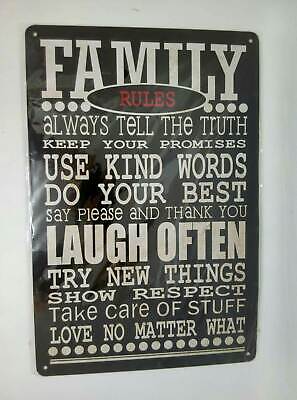 Nostalgie Vintage Retro Blechschild "Family Rules" Spruch s.Bild 30x20 50338 Im Angebot