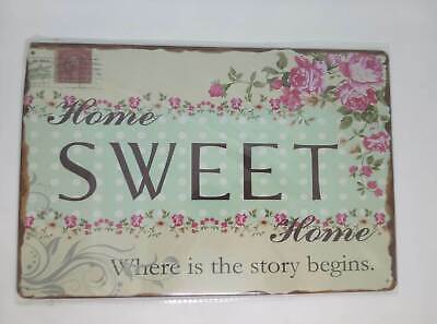 Nostalgie Vintage Retro Blechschild "home sweet home" blumen flowers 30x20 50339
