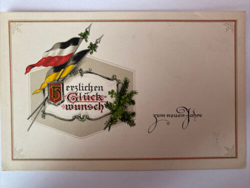 Patriotika "Herzlichen Glückwunsch zum neuen Jahre" , Fahnen 410038 AH Im Angebot