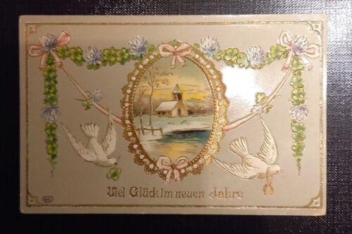 Prägekarte Viel Glück Im Neuen Jahr 2 Tauben Und Kirche 650458 Ga B Im Angebot