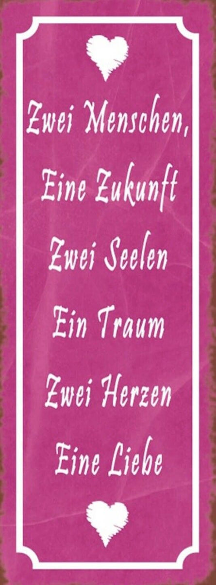 Schild 2 Menschen Eine Zukunft 2 Seelen Ein Traum 2 Herzen Eine Liebe 27x10 Im Angebot