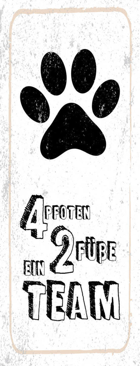 Schild 4 Pfoten 2 Füße Ein Team Katze Hund Haus Tier Mensch 27x10 Blech od.Holz Im Angebot