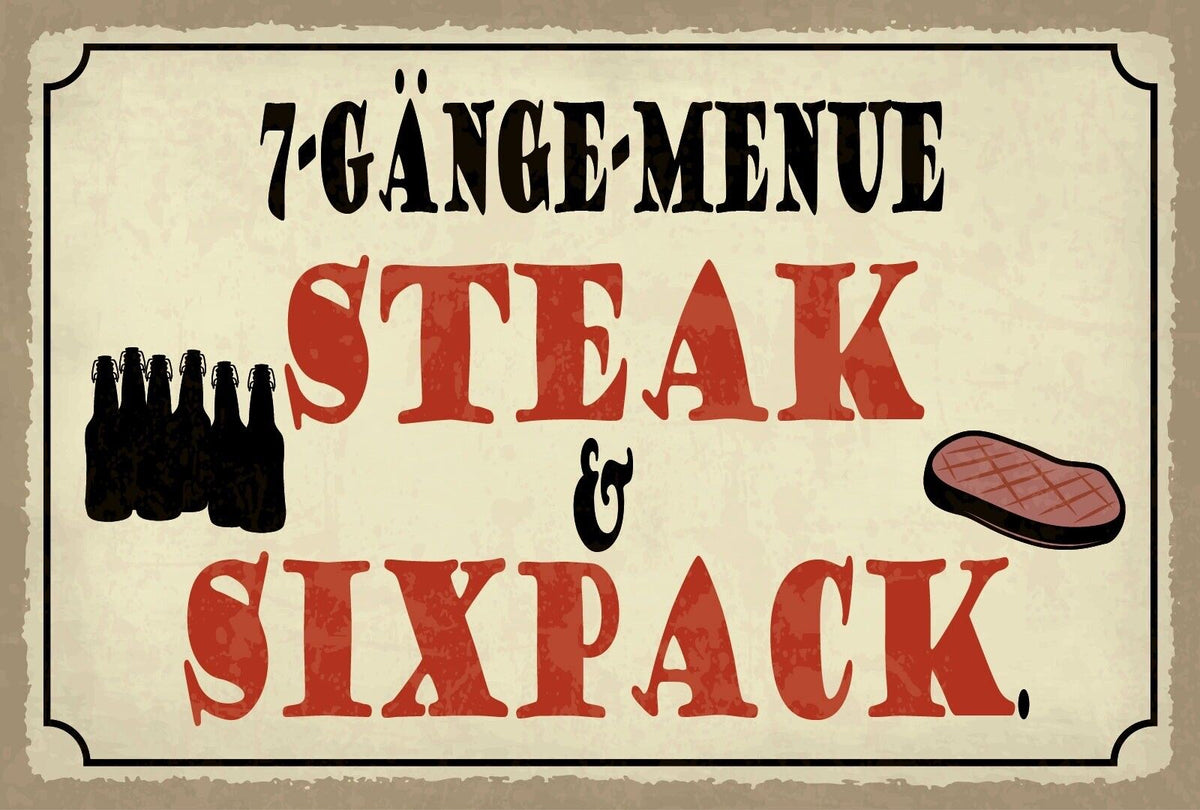 Schild 7-GängeMenü Steak Sixpack Grillen BBQ 12x18 / 20x30 / 30x40 Blech od.Holz Im Angebot