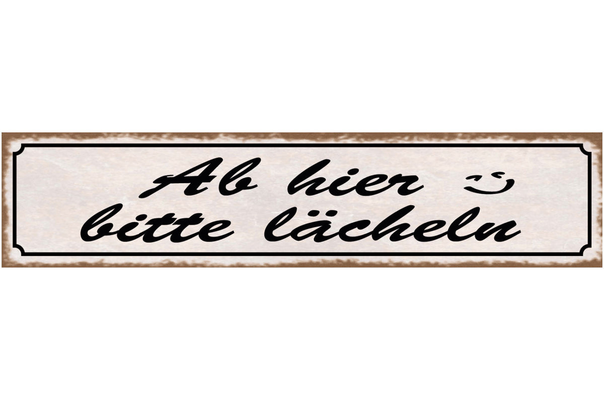 Schild Ab Hier Bitte Lächeln :) Lachen Gesicht Positiv 46 x 10 Blech od. Holz Im Angebot