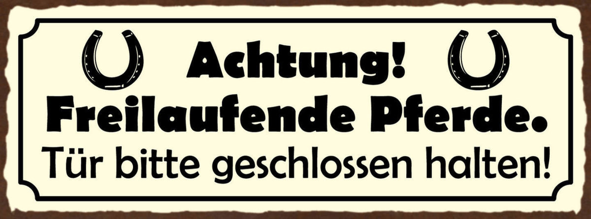 Schild Achtung Freilaufende Pferde Tür Bitte Geschlossen Halten Pferd 27x10 Im Angebot