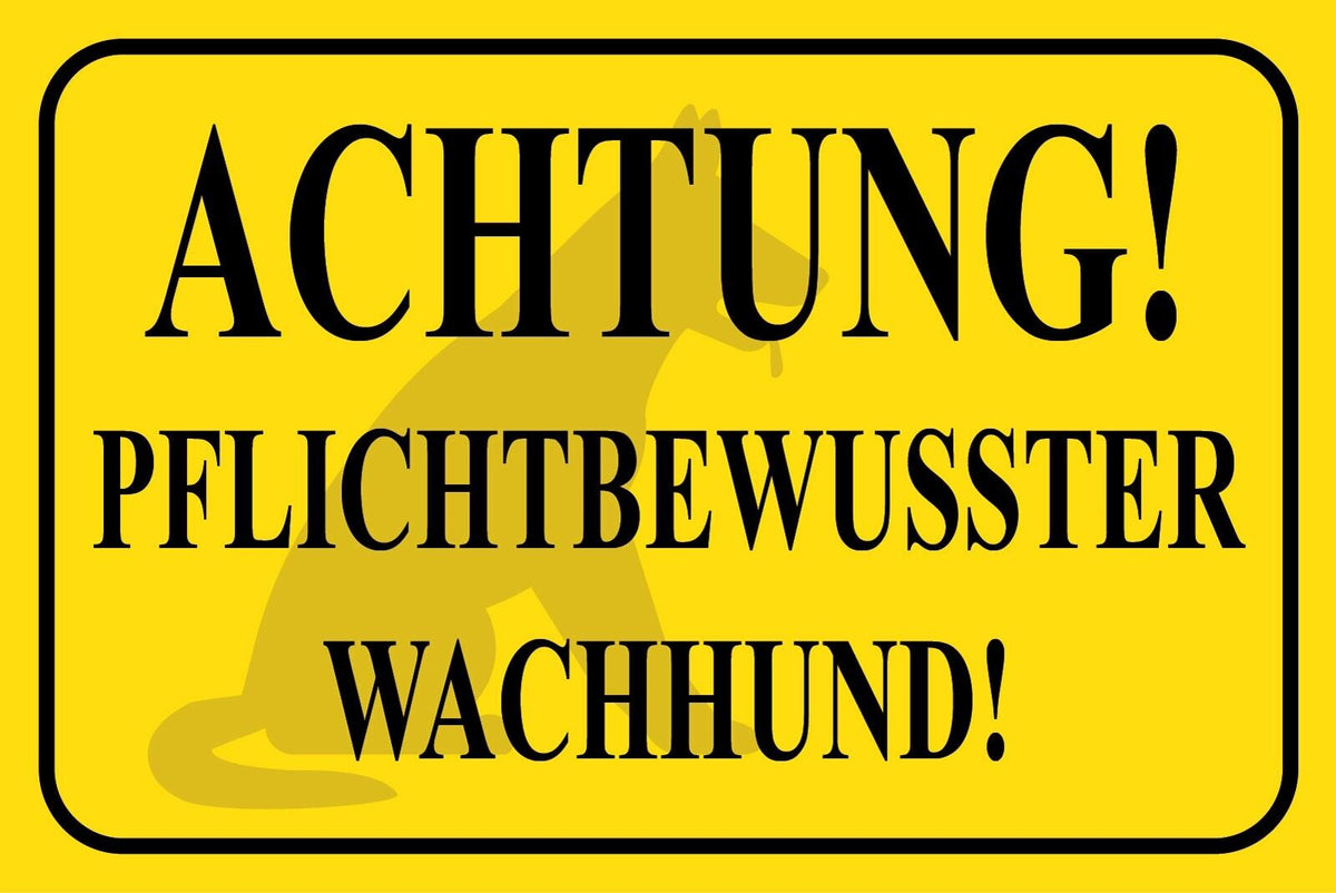Schild Achtung! Pflichtbewusster Wachhund 12x18 / 20x30 / 30x40 Blech od. Holz Im Angebot