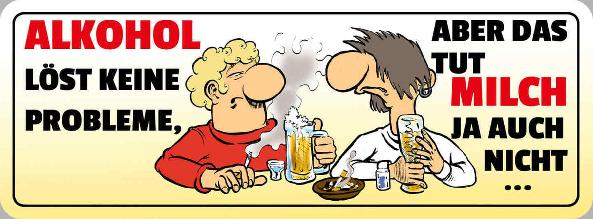 Schild Alkohol Löst Keine Probleme Aber Das Tut Milch Ja Auch Nicht 27 x 10 Im Angebot