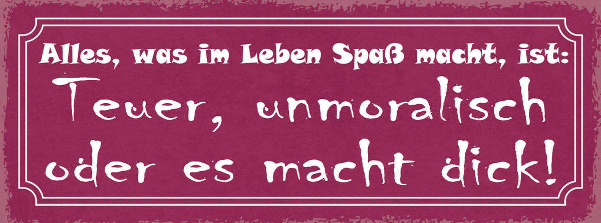 Schild Alles Was Im Leben Spaß Macht Ist Teuer Unmoralisch Oder Es Macht Dick Im Angebot