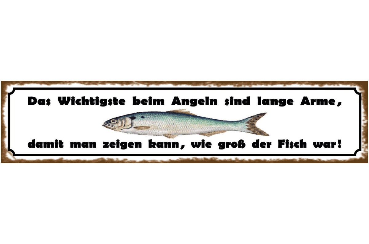 Schild Angeln Fischen Fisch Größe Länge Arme Angel Rute 46 x 10 Blech od. Holz Im Angebot