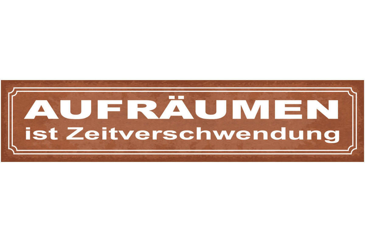 Schild Aufräumen Ist Zeitverschwendung Putzen Ordnung 46 x 10 Blech od.Holz Im Angebot
