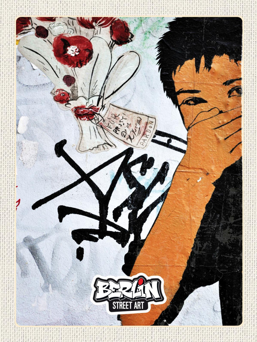 Die Kombination aus kraftvollem Graffiti und zarten Blumen schafft eine harmonische Balance zwischen urbanem Ausdruck und natürlicher Eleganz. Jedes Schild ist ein Unikat und erzählt eine eigene Geschichte, die die Kreativität und den Erfindungsreichtum der Berliner Straßenkunst verkörpert. Dieses Kunstwerk lädt nicht nur zum Staunen ein, es ist auch ein Gesprächsstoff für jeden Besucher.