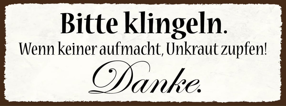 Schild Bitte Klingeln Wenn Keiner Aufmacht Unkraut Zupfen Danke Garten 27x10 Im Angebot