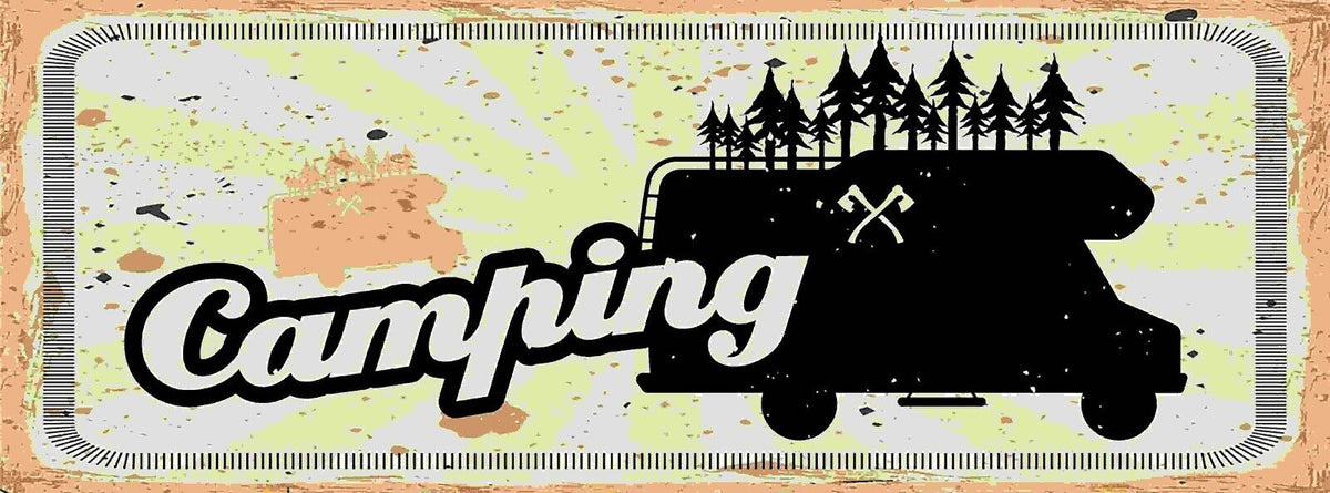 Schild Camping Campen Camper Wohnwagen Platz Zelten Zelt 27x10 Blech od.Holz Im Angebot
