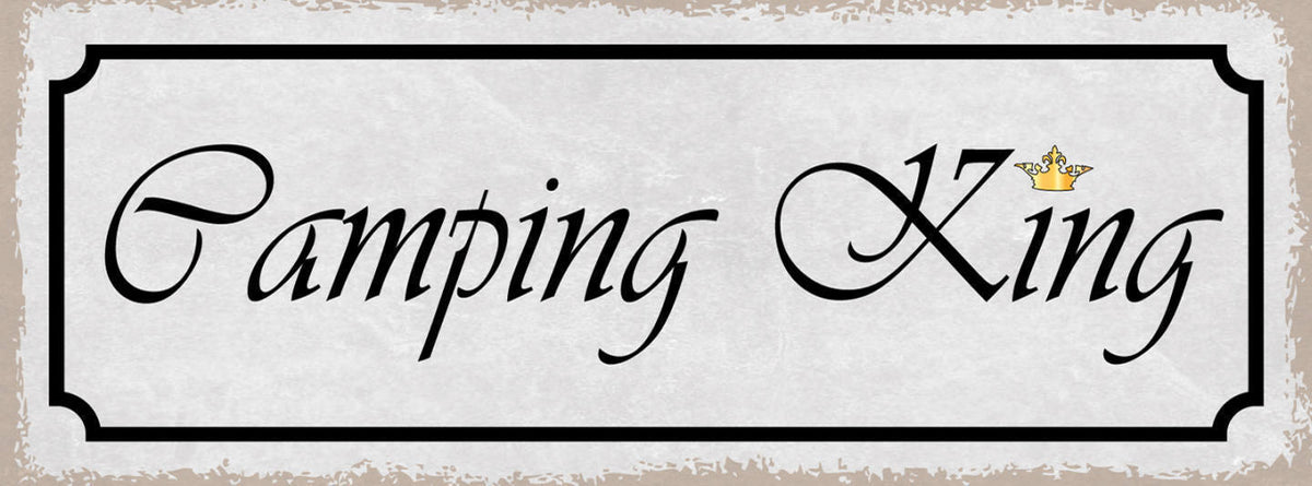 Schild Camping King Campen Camper König Zelt Outdoor 27x10 Blech od.Holz Im Angebot
