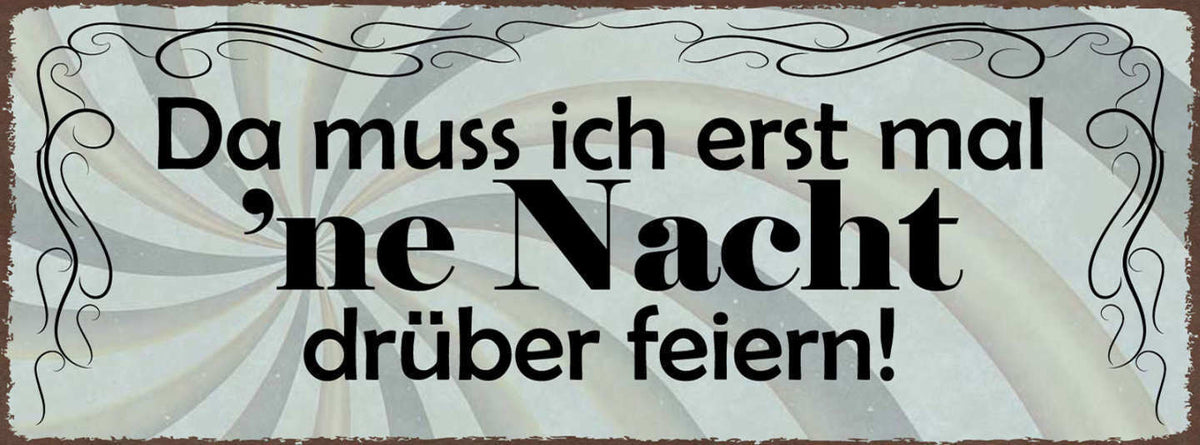 Schild Da Muss Ich Erst Ne Nacht Drüber Feiern Party Feier 27x10 Blech od.Holz Im Angebot