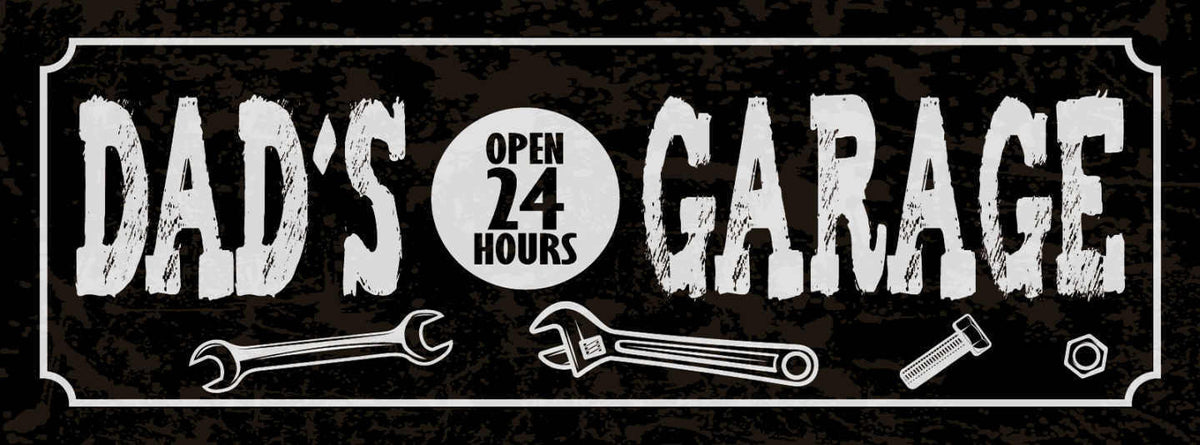 Schild Dad's Garage Open 24 Hours Vater Papa Offen Auto 27x10 Blech od.Holz Im Angebot
