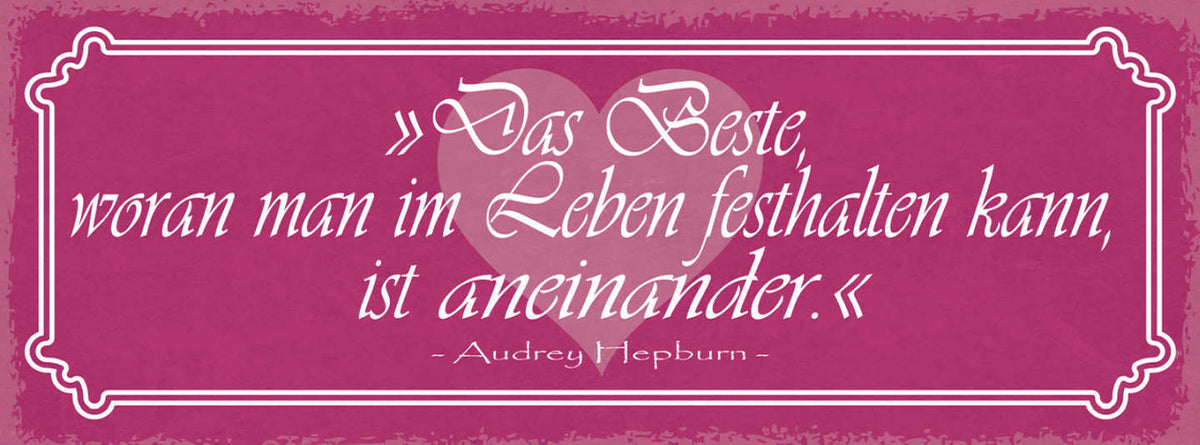 Schild Das Beste Woran Man Im Leben Festhalten Kann Ist Einander A.Hepburn 27x10 Im Angebot