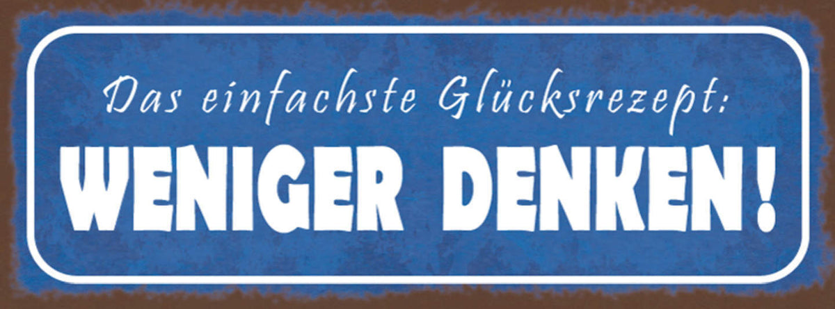Schild Das Einfachste Glücksrezept Weniger Denken Nachdenken 27x10 Blech od.Holz Im Angebot