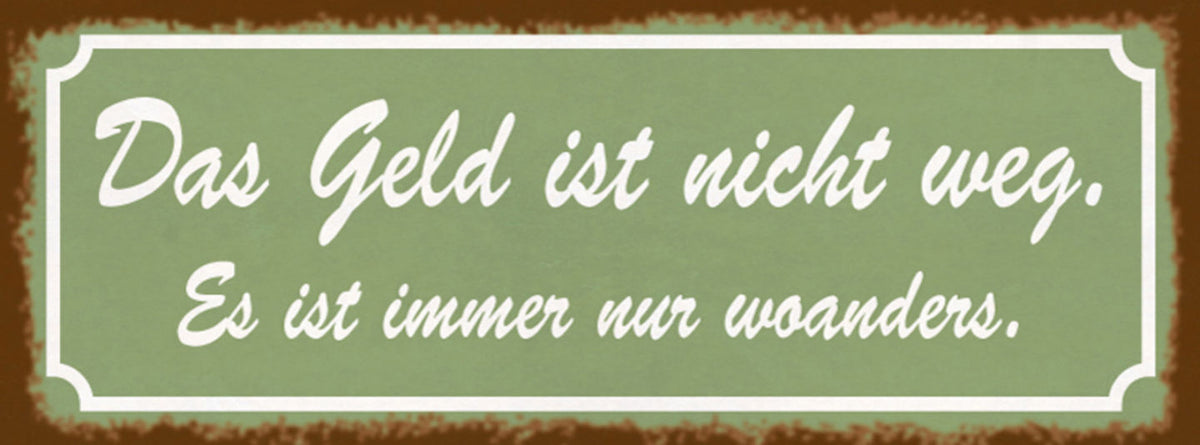 Schild Das Geld Ist Nicht Weg Es Ist Immer Nur Woanders 27x10 Blech od.Holz Im Angebot