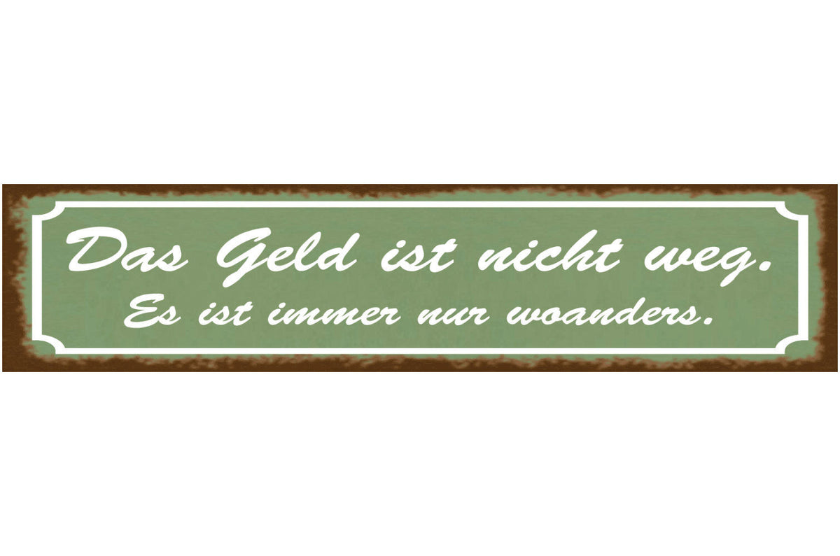 Schild Das Geld Ist Nicht Weg Immer Nur Woanders Sparen 46 x 10 Blech od. Holz Im Angebot