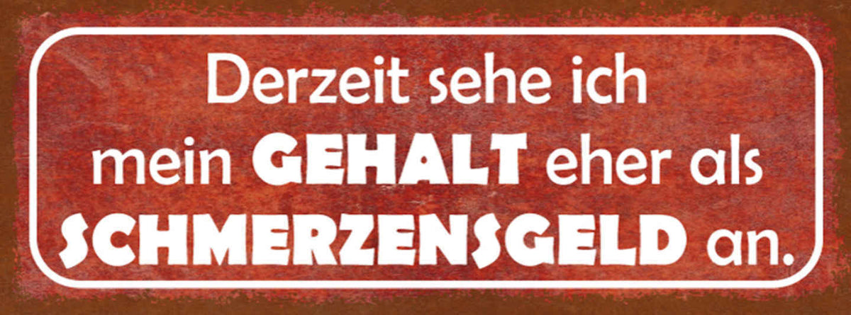 Schild Derzeit Sehe Ich Mein Gehalt Eher Als Schmerzensgeld An Arbeit 27x10 Im Angebot