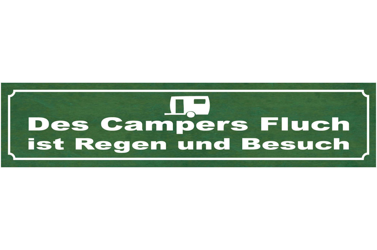 Schild Des Campers Fluch Ist Regen & Besuch Camping 46 x 10 Blech od. Holz Im Angebot