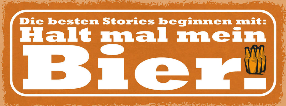 Schild Die Besten Stories Beginnen Mit Halt Mal Mein Bier 27x10 Blech od.Holz Im Angebot