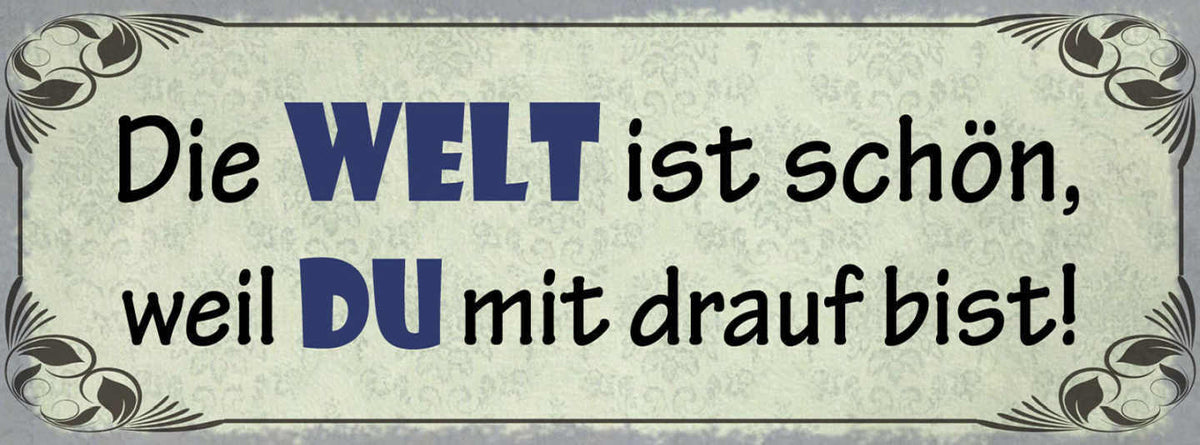 Schild Die Welt Ist Besser Weil Du Mit Drauf Bist Liebe 27x10 Blech od.Holz Im Angebot