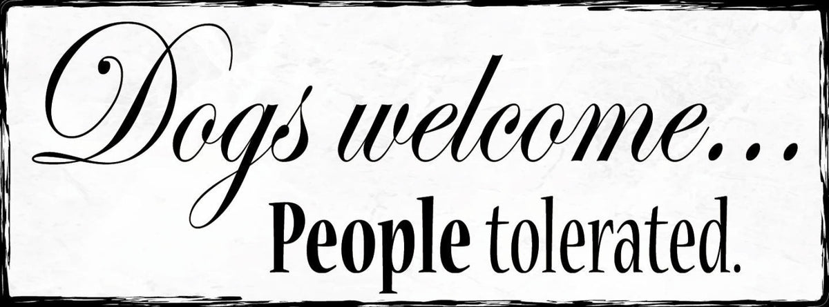 Schild Dogs Welcome People Tolerated Hunde Menschen Geduldet 27x10 Blech od.Holz Im Angebot