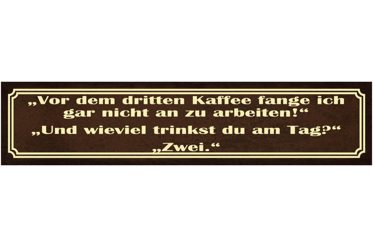 Schild Dritten Kaffee Trinken Arbeit Anfangen Job Café 46 x 10 Blech od. Holz Im Angebot