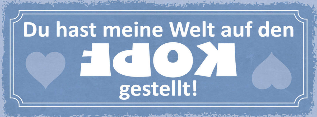 Schild Du Hast Meine Welt Auf Den Kopf Gestellt Liebe Ehe 27x10 Blech od.Holz Im Angebot