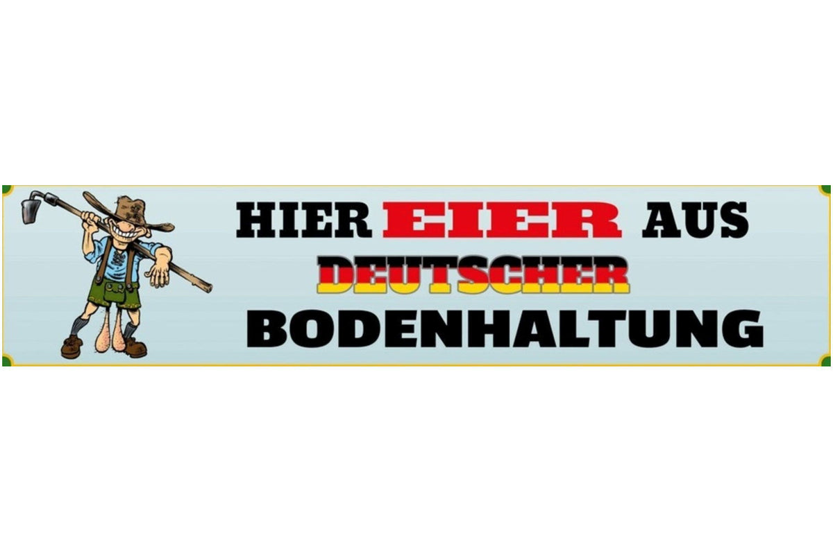 Schild Eier Deutsche Bodenhaltung Hoden Tracht Bayern 46 x 10 Blech od.Holz Im Angebot