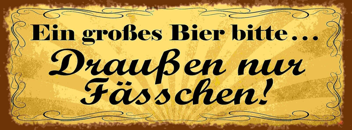 Schild Ein Großes Bier Bitte Draußen Nur Fässchen Alkohol 27x10 Blech od.Holz Im Angebot
