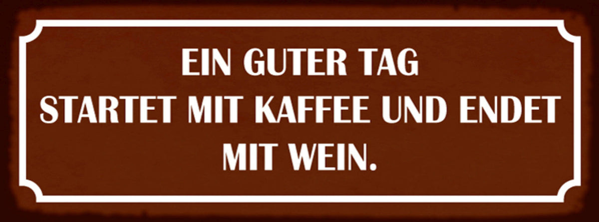 Schild Ein Guter Tag Startet Mit Kaffee & Endet Mit Wein 27 x 10 Blech od. Holz Im Angebot