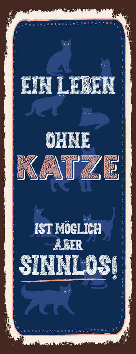 Schild Ein Leben Ohne Katze Ist Möglich Aber Sinnlos Tier 27x10 Blech od.Holz Im Angebot